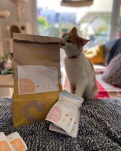 Le prix de la commande d’essai est en moyenne de 7€ (le prix exact dépend du profil de votre chat et du menu choisi) et vous permet de recevoir tout ce qu’il vous faut pour essayer Caats dans les meilleures conditions :