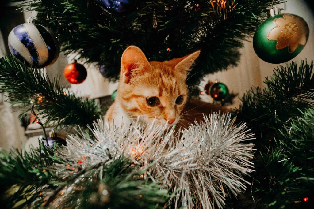 En termes de décoration, privilégie les décorations incassables aux boules de Noël en verre, et fais attention aux guirlandes électriques : certains chats aiment bien les grignoter.